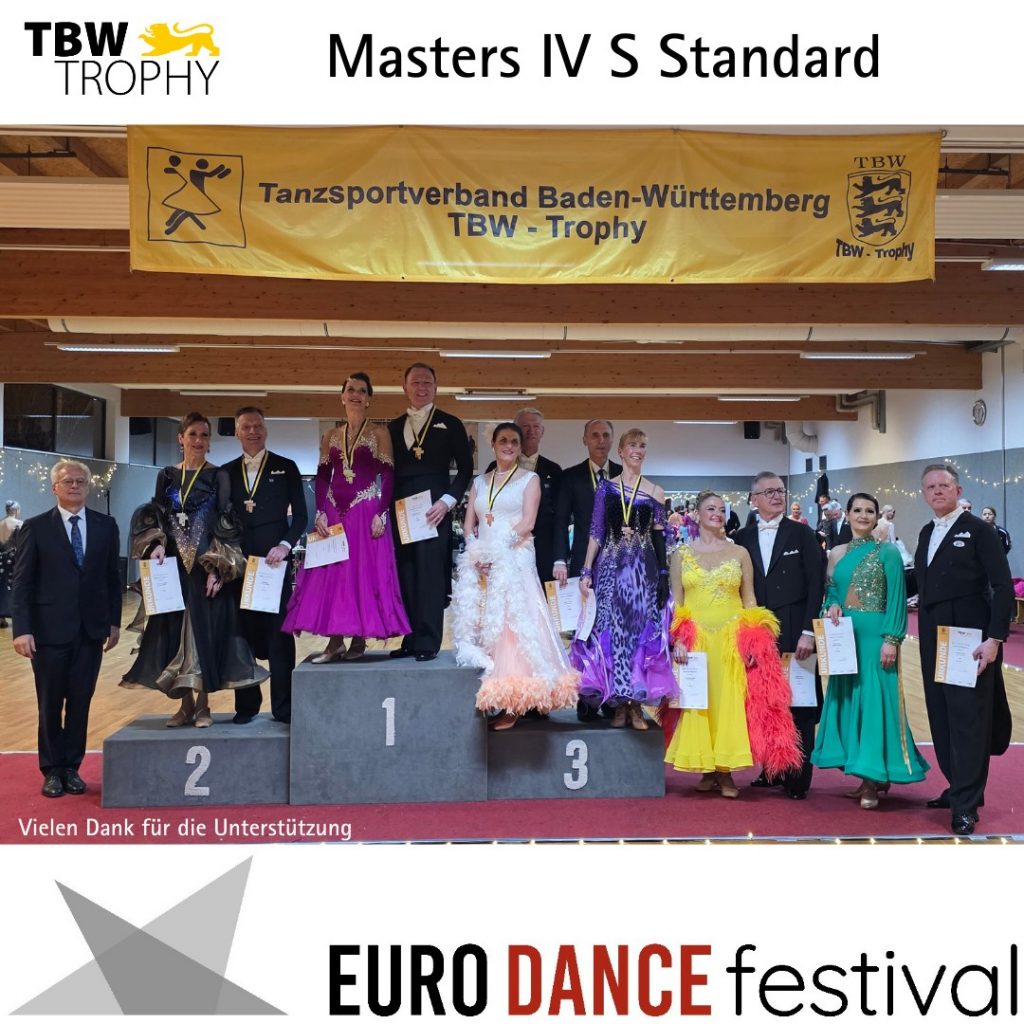 Auch im Standardbereich war der TSC Rot-Weiss Viernheim beim TBW-Trophy-Finale vertreten. Michael Lukas & Yana Ulrich starteten am 14. Dezember in der Masters IV S Standard und stellten sich einem Feld von 13 Paaren. Mit einer souveränen Vorrunde (25 Kreuze) und einer überzeugenden Zwischenrunde (21 Kreuze) qualifizierten sie sich für das Finale. Dort überzeugten sie mit einer starken Präsentation und erreichten einen sehr guten 4. Platz, wobei sie insbesondere im Wiener Walzer auf Platz 3 gewertet wurden.