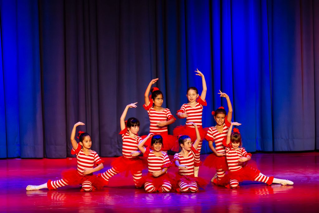 Weihnachtlich wurde es anschließend bei den „Eiskristallen“ und dem “Zuckerstangentanz” der zweiten Ballettgruppe, die – ganz im Sinne der Vereinsfarben – in Rot und Weiß winterliche Bilder auf die Bühne zauberten.